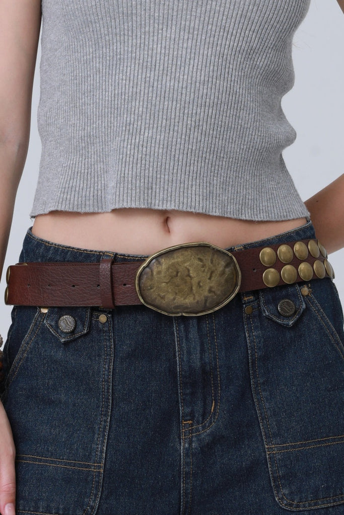 Bold Oval Buckle Belt – Studded Statement Piece