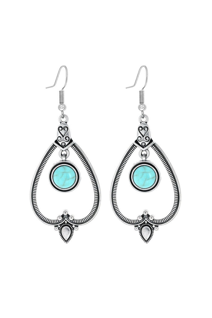 Free-spirited romance! These bohemian earrings feature delicate heart cut-outs centered with round turquoise stones. Lightweight and artistic, they add a touch of desert poetry to any outfit. #LoveMyLeto#BohoEarrings #HeartDesign πŸ’«βœ¨