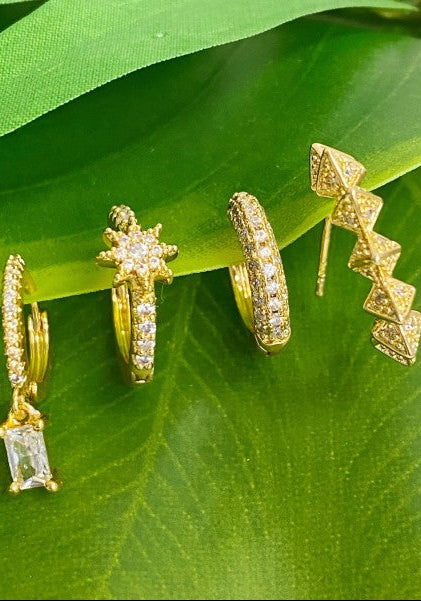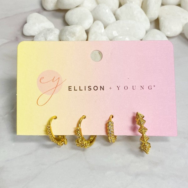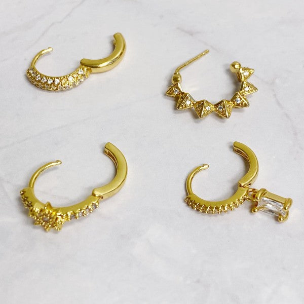 This Edge In Shine Mini Hoop Set contains 4 unique earrings that bring unbalanced styles to your look. Each piece features a little edge and beautiful shine for a subtle yet elegant look. Enjoy the versatility of this unique set.