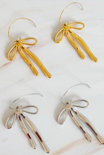 Introducing our Stylist Bow Drop Earrings - a modern twist on the classic bow design. These earrings are the perfect combination of style and elegance. Add a touch of sophistication to any outfit with these stylish earrings. Make a statement with our timeless and chic bow earrings.