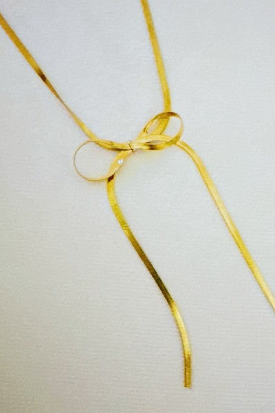 Long Drop Herringbone Bow Necklace