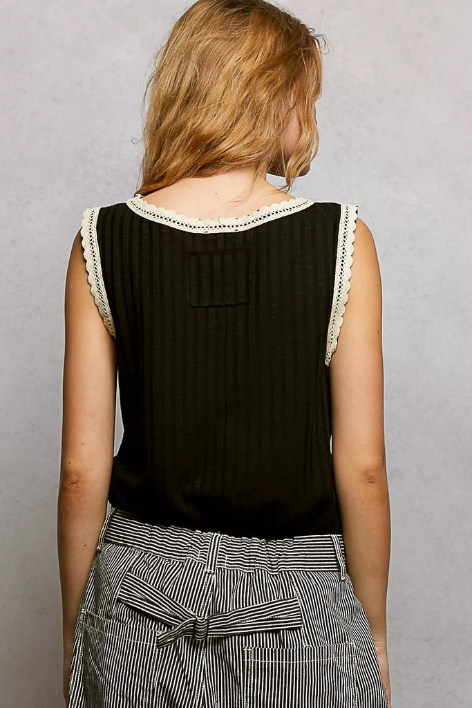 This round neck sleeveless top features a textured rib fabric and a regular fit for a classic yet stylish look. The high-low length adds a modern twist to the design. The trim neck and armhole lines provide a polished and structured finish. With normal washing care, this top is easy to maintain and keep looking fresh. The solid color makes it versatile for pairing with various bottoms for different outfit options. Enjoy the comfort and sophistication of this sleeveless top in your wardrobe rotation.