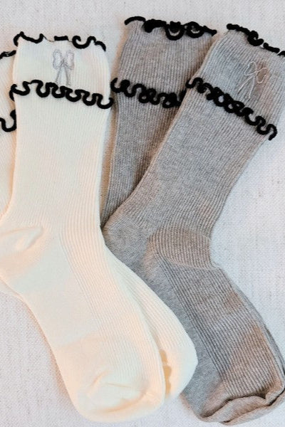 With a unique and lovely ripple design and chic ribbon embroidery, these socks are sure to make a statement. One size, generally fits 5-9.5 US women size65% Cotton 32% Polyester 3% SpandexMade in China